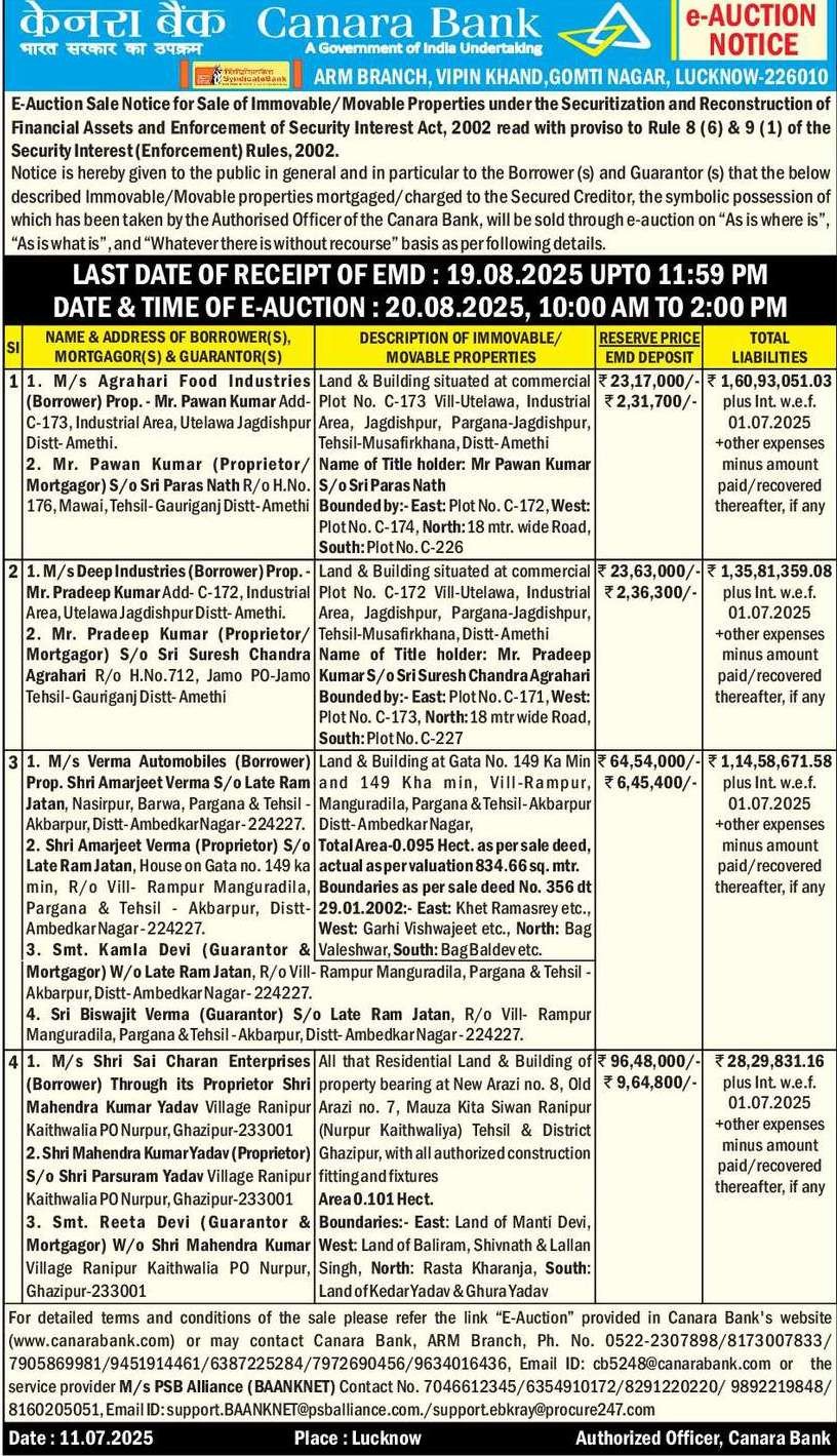 All that Residential Land & Building of property bearing at New Arazi no. 8, Old Arazi no. 7, Mauza Kita Siwan Ranipur (Nurpur Kaithwaliya) Tehsil & District Ghazipur, with all authorized construction fittingand fixturesBoundaries:- East: Land of Manti Devi, West: Land of Baliram, Shivnath & Lallan Singh, North: Rasta Kharanja, South: Land of Kedar Yadav & Ghura Yadav
