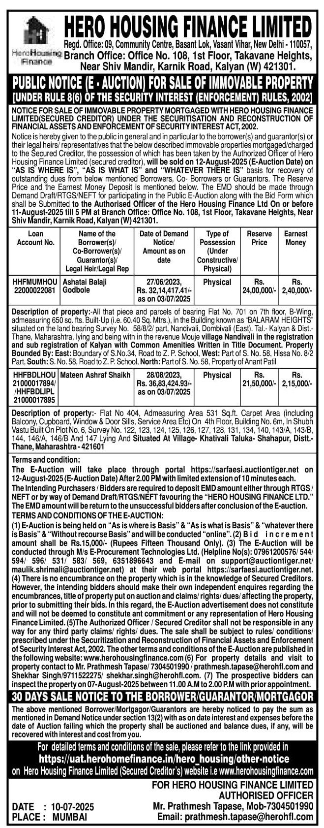 Description of property: Flat No 404, Admeasuring Area 531 Sq.ft. Carpet Area (including Balcony, Cupboard, Window & Door Sills, Service Area Etc) On 4th Floor, Building No. 6m, In Shubh Vastu Built On Plot No. 6, Survey No. 122, 123, 124, 125, 126, 127, 128, 131, 134, 140, 143/A, 143/B, 144, 146/A, 146/B And 147 Lying And Situated At Village- Khativali Taluka- Shahapur, Distt.-Thane, Maharashtra-421601