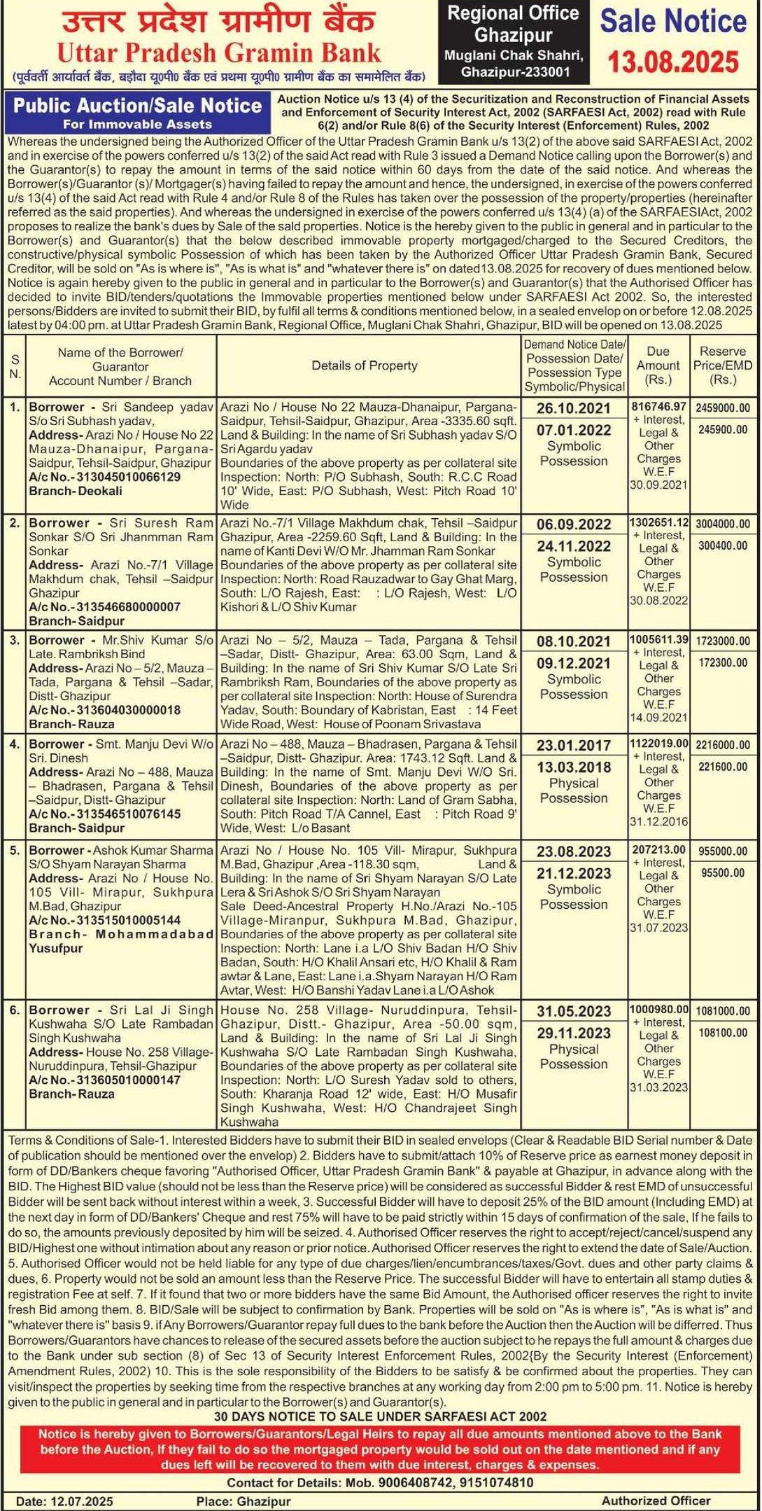 2) Arazi No.-7/1 Village Makhdum chak, Tehsil -Saidpur Ghazipur, Area -2259.60 Sqft, Land & Building: In the name of Kanti Devi W/O Mr. Jhamman Ram Sonkar Boundaries of the above property as per collateral site Inspection: North: Road Rauzadwar to Gay Ghat Marg, South: L/O Rajesh, East: L/O Rajesh, West: L/O Kishori & L/O Shiv Kumar