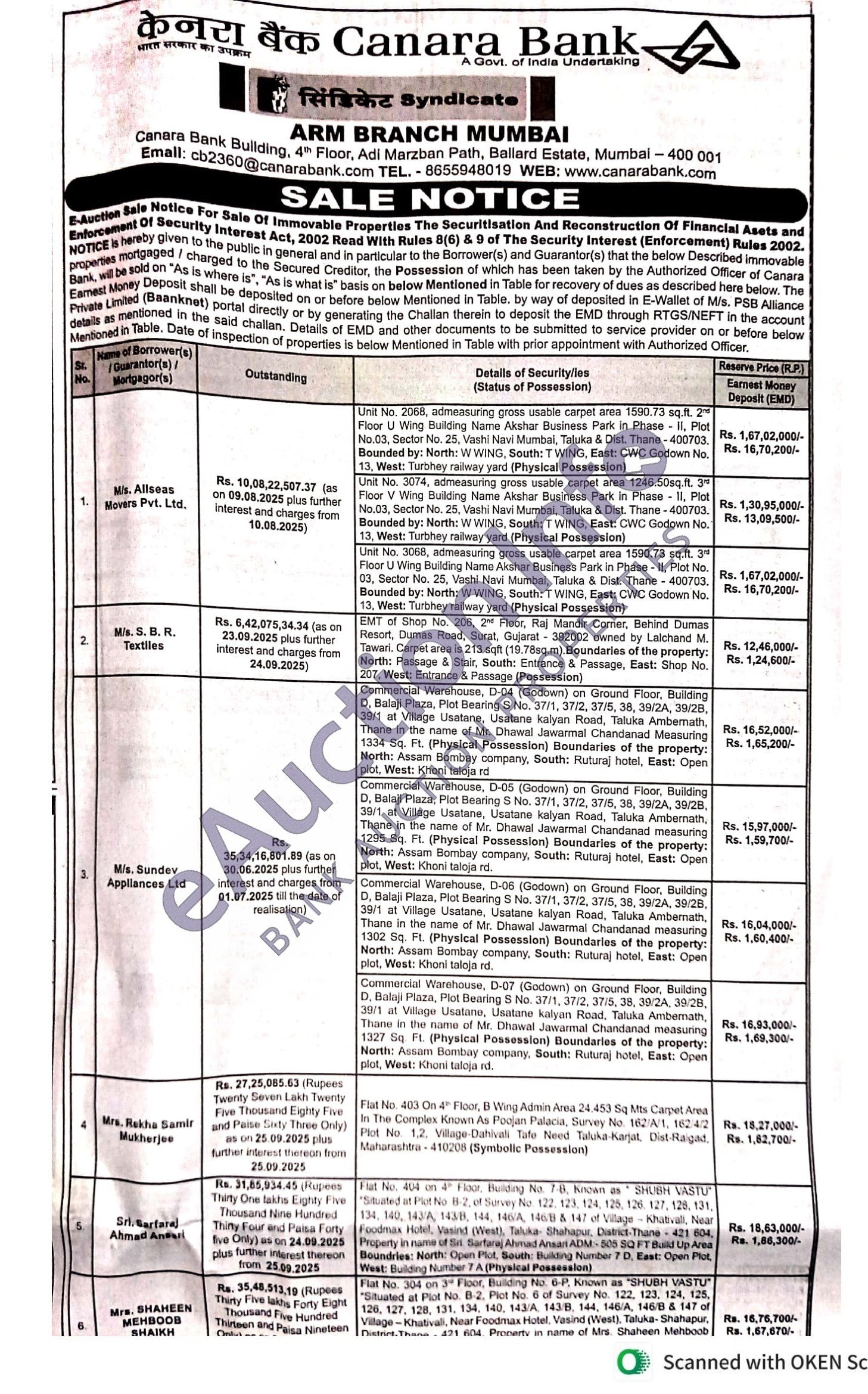 EMT of Shop No. 206, 2nd Floor, Raj Mandir Corner, Behind Dumas Resort, Dumas Road, Surat, Gujarat 392002 owned by Lalchand M. Tawari. Carpet area is 213 sqft (19.78sq.m). Boundaries of the property: North: Passage & Stair, South: Entrance & Passage, East: Shop No. 207, West: Entrance & Passage (Possession)