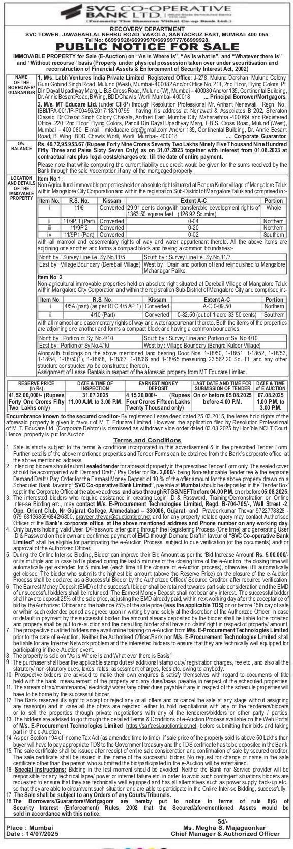 Non-agricultural immovable properties held on absulicte right situated at Devetail Village of Mangalore Taluk within Mangalore City