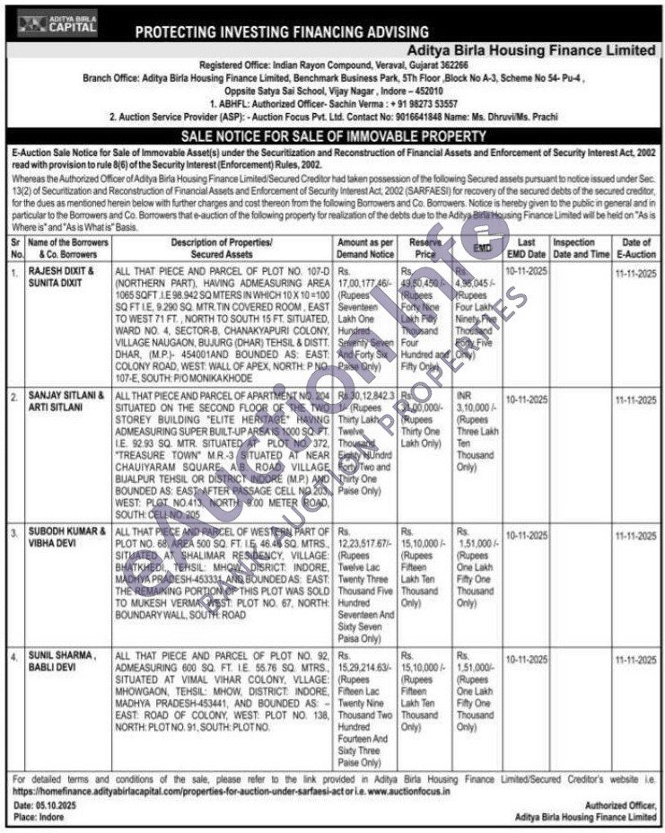 ALL THAT PIECE AND PARCEL OF PLOT NO. 107-D (NORTHERN PART), HAVING ADMEASURING AREA 1065 SQFT IE 98.942 SQ MTERS IN WHICH 10X 10-100 SQ FTIE, 9.290 SQ. MTR.TIN COVERED ROOM, EAST TO WEST 71 FT., NORTH TO SOUTH 15 FT. SITUATED, WARD NO. 4, SECTOR-B, CHANAKYAPURI COLONY, VILLAGE NAUGAON, BUJURG (DHAR) TEHSIL & DISTT. DHAR, (M.P.) 454001AND BOUNDED AS: EAST: COLONY ROAD, WEST WALL OF APEX, NORTH: P NO. 107-E, SOUTH: PIO MONIKAKHODE