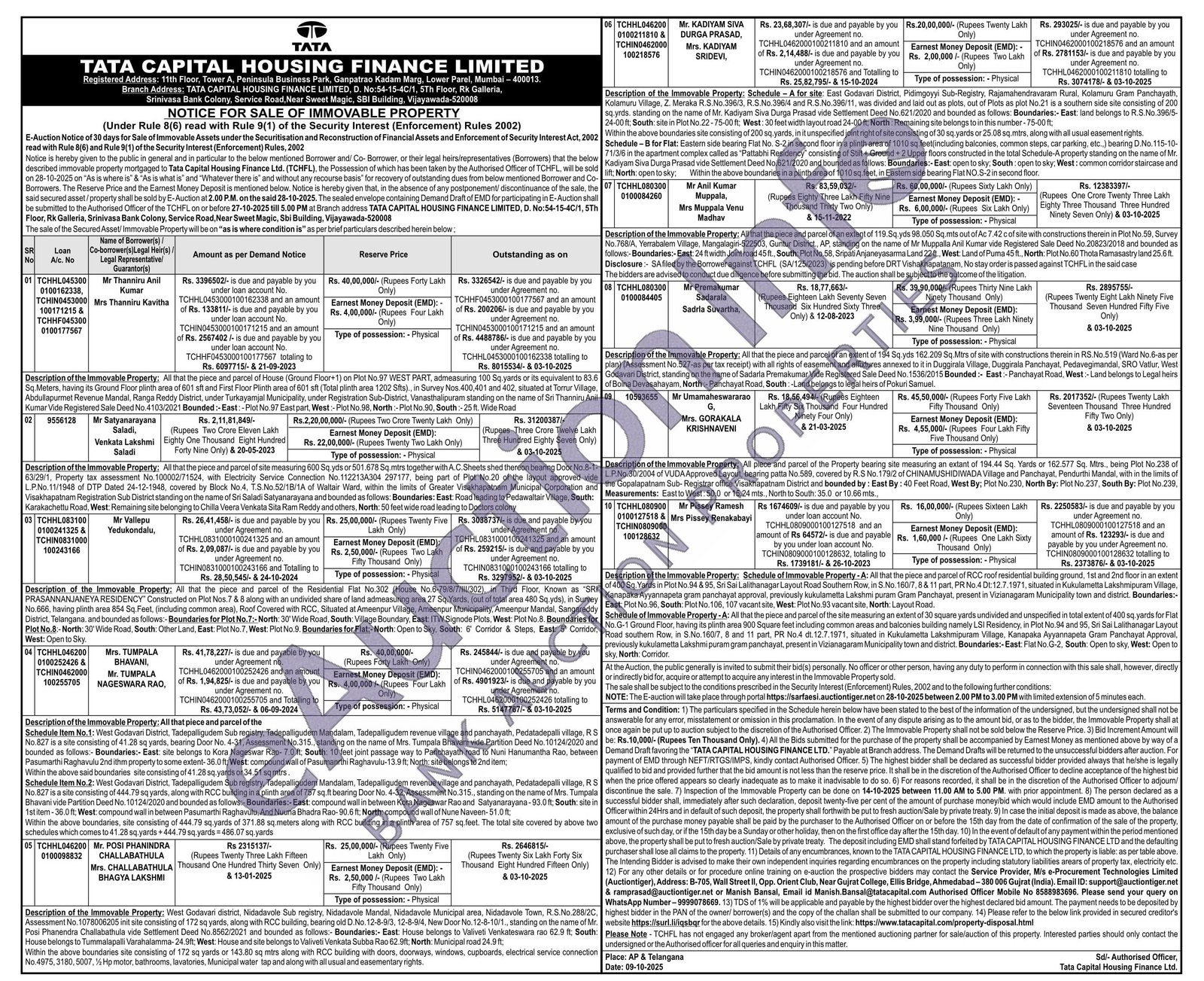 All that the piece and parcel of the Residential Flat No.302 (House No.6-79/8/7/III/302), in Third Floor, Known as "SRI PRASANNANJANEYA RESIDENCY" Constructed on Plot Nos.7 & 8 along with an undivided share of land admeasuring area 27 Sq. Yards, (out of total area 480 Sq.yds), in Survey No.666, having plinth area 854 Sq. Feet, (including common area), Roof Covered with RCC, Situated at Ameenpur Village, Ameenpur Municipality, Ameenpur Mandal, Sangareddy District, Telangana, and bounded as follows:-Boundaries for Plot No.7:- North: 30' Wide Road, South: Village Boundary, East: ITW Signode Plots, West: Plot No.8. Boundaries for Plot No.8:-North: 30' Wide Road, South: Other Land, East: Plot No. 7, West: Plot No.9. Boundaries for Flat:-North: Open to Sky, South: 6' Corridor & Steps, East: 5' Corridor, West: Open to Sky.