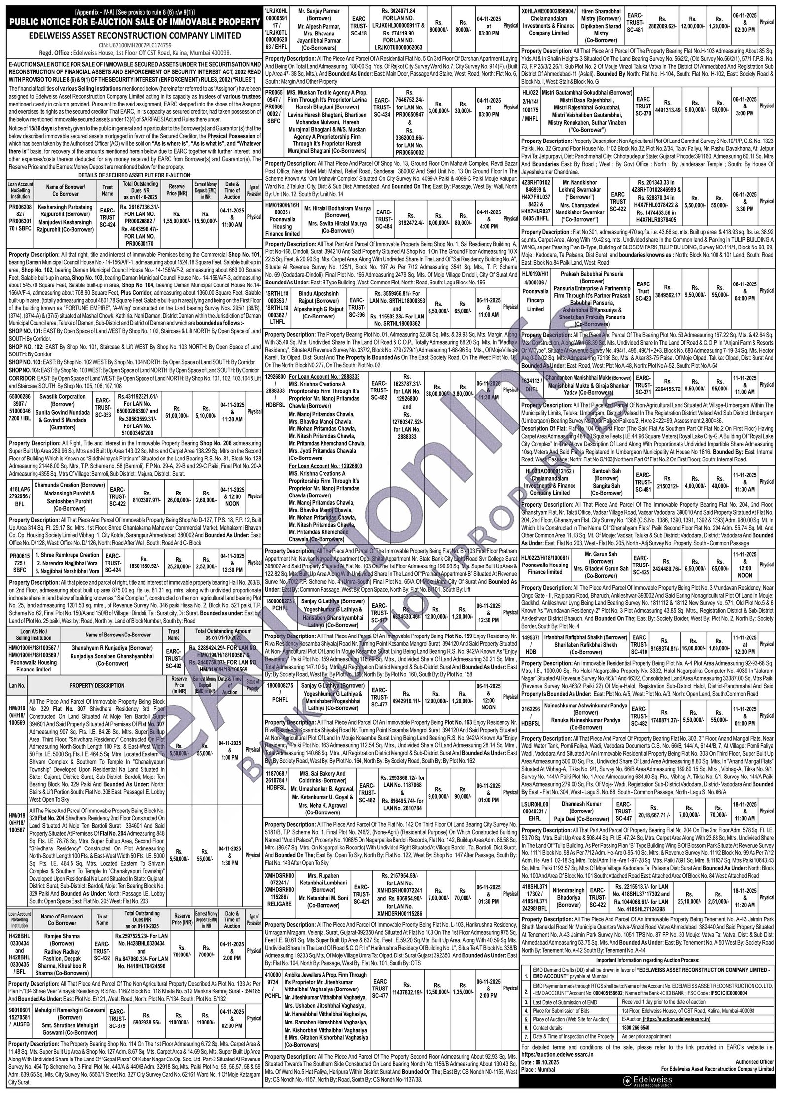 All Right, Title and Interest in the Immovable Property Bearing Shop No. 206 admeasuring Super Built Up Area 289.96 Sq. Mtrs and Built Up Area 143.02 Sq. Mtrs and Carpet Area 138.29 Sq. Mtrs on the Second Floor of Building Which is Known as "Siddhivinayak Platinum" Situated on the Land Bearing R.S. No. 81, Block No. 128 Admeasuring 21448.00 Sq. Mtrs, T.P. Scheme no. 58 (Bamroli), F.P.No. 29-A, 29-B and 29-C Paiki, Final Plot No. 20-A Admeasuring 4355 Sq. Mtrs Of Village: Bamroli, Sub District: Majura, District: Surat.