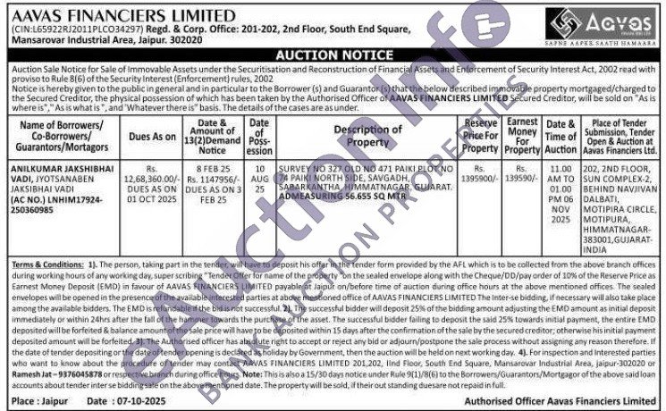 SURVEY NO 327 OLD NO 471 PAIKI PLOT NO 74 PAIKI NORTH SIDE, SAVGADH. SABARKANTHA, HIMMATNAGAR, GUJARAT. ADMEASURING 56.655 SQ MTR