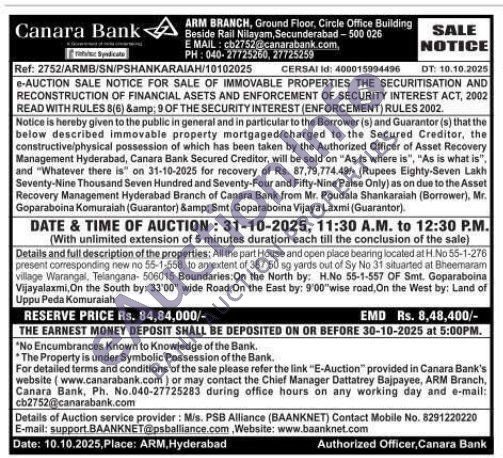 All the part House and open place bearing located at H.No 55-1-278 present corresponding new no 55-1-558, to an extent of 387.50 sg yards out of Sy No 31 situarted at Bheemaram village Warangal, Telangana- 506015 Boundaries: On the North by: H.No 55-1-557 OF Smt. Goparaboina Vijayalaxmi, On the South by: 33'00" wide Road, On the East by: 9'00"wise road, On the West by: Land of Uppu Peda Komuraiah