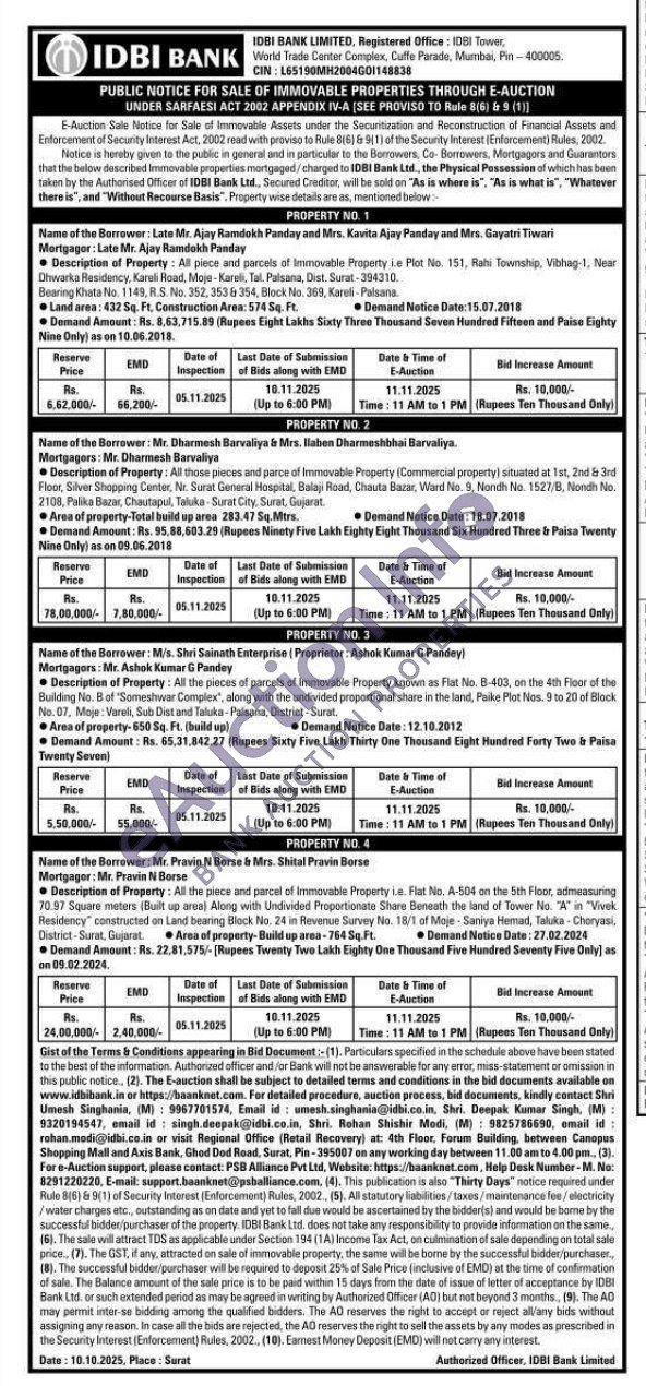 Description of Property: All piece and parcels of Immovable Property i.e Plot No. 151, Rahi Township, Vibhag-1, Near Dhwarka Residency, Kareli Road, Moje-Kareli, Tal. Palsana, Dist. Surat-394310.