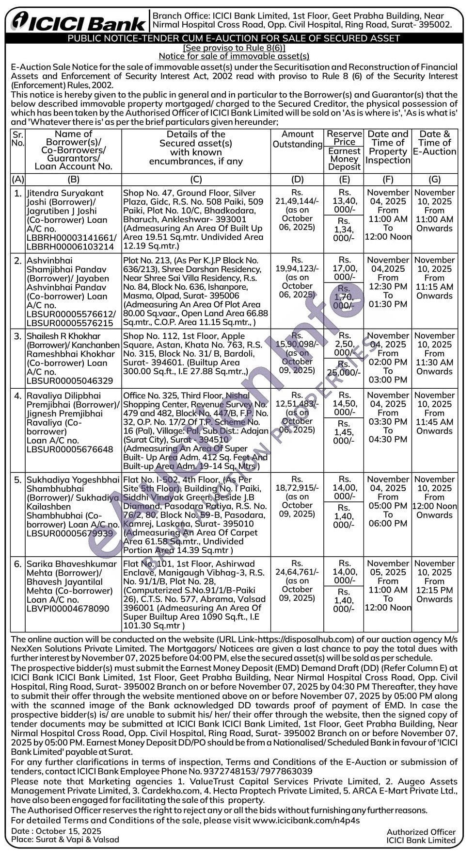 5) Flat No. 1-502, 4th Floor, (As Per Site 5th Floor), Building No. 1 1 Paiki, Siddhi Vinayak Green, Beside J.B Diamond, Pasodara Patiya, R.S. No. 76/2, 80, Block No. 59-8. Pasodara, Kamrej, Laskana, Surat-395010 (Admeasuring An Area Of Carpet Area 61.58 Sq.mtr., Undivided Portion Area 14.39 Sq.mtr)