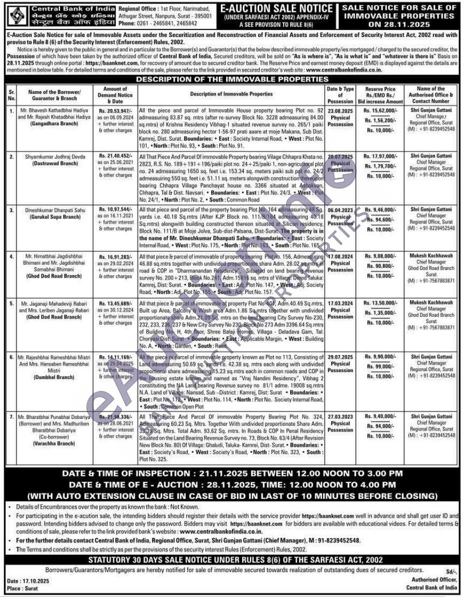 All the piece and parcel of Immovable House property bearing Plot no. 92 admeasuring 83.87 sq. mtrs (after re-survey Block No. 3228 admeasuring 84.00 sq.mtrs) of Krishna Residency Vibhag-1 situated revenue survey no. 265/1 paiki block no. 280 admeasuring hector 1-56-97 prati aaare at moje Makana, Sub Dist. Kamrej, Dist. Surat. Boundaries: East: Society Internal Road, West: Plot No. 101, North: Plot No. 93, South: Plot No. 91