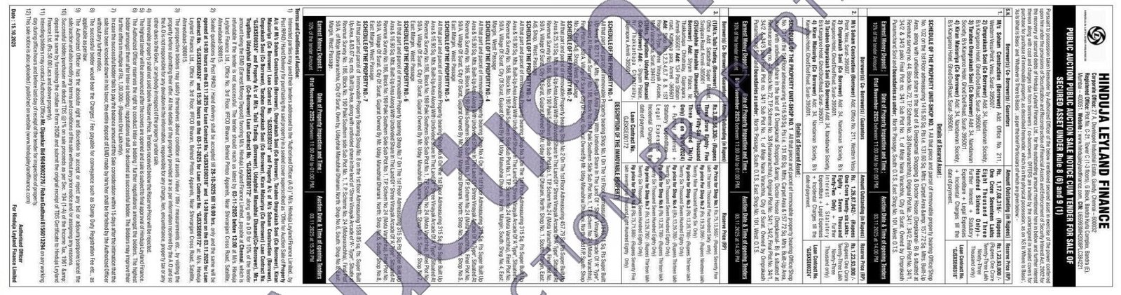 SCHEDULE OF THE PROPERTY NO.-1 All that part and parcel of immovable Property bearing Shop No.1 On The 1st Floor Admeasuring 1545.11 Sq. Fts Super Built Up Area & 82.71 Sq. Mts. Built-Up Area Along With Undivided Share In The Land Of Shree Vinayak Arcade Of 'A' Type", Situated At Revenue Survey No. 186, Block No 190 Paiki Southem Side Sub Plot No.1, TP. Schem No.24 (Mota Varachha). Finel Plot No. 50/A, Village Of Surat City Of Surat, Gujarat Owned By Mr. Uday Manubhai Dhanani. North: Add F/P, South: Shop No.2. East: Adj, Shop, West Passage