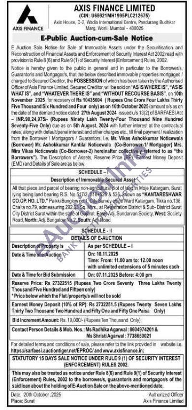 All that piece and parcel of bearing non-agricultural plot of land in Moje Katargam, Surat lying being land bearing R.S. No.517/3, 518+525 & 526, known as "KANTARESHWAR CO.OP. HO. LTD." Paikki Bunglow no.1. City Survey office Ward Kalargam, Tikka no, 138, Chalta no. 79, admeasuring 292.93 Sq. Mirs, at Registration District & Sub-District Surat City District Surat within the state of Gujarat East: Adj Sundarvan Society, West: Society Road, North: Adj. Bungalow No.2, South: Adj Road