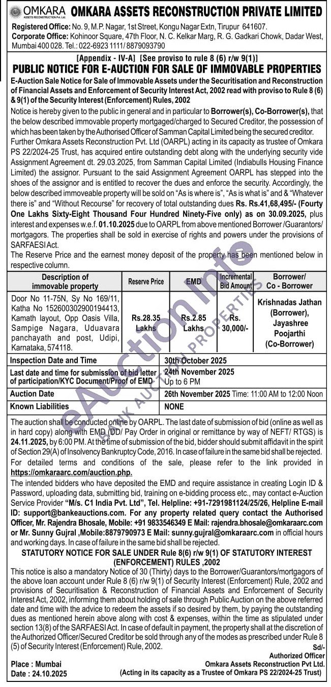 Door No 11-75N, Sy No 169/11, Katha No 152600302900194413, Kamath layout, Opp Oasis Villa, Sampige Nagara, Uduavara panchayath and post, Udipi, Karnataka, 574118
