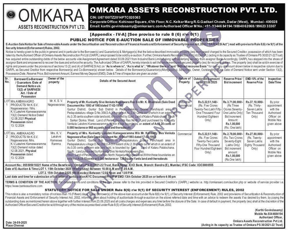 Property of Mrs. Kunisetty Lakshmi Kameswaramma W/o Mr. Kunisetty Siva Venkata Nageswara Rao (Sale Deed Document No: 1094 of 1993 dated 17-02-1993)Guntur District, Guntur Sub District in Pedapalakaluru Grama Panchayati area in Pedapalakaluru village D.No.358/2-A-3 in extent of Ac.2.39 Cents out of which in an extent of Ac.0.35 cents northern side land sold, is bounded by: East: Land of Kataru Palalochana. South: Land purchased by Kunisetty Siva Venkata Nageswara Rao.West: Land of Peram Govinda Rao. North: Nagarjuna Sagar Canal. Within these boundaries an extent of Ac.0.15 cents or 0.060 hectares or 726 Square Yards land and thereabouts