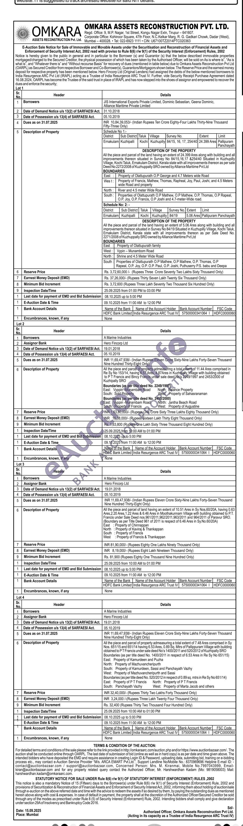 All the piece and parcel of property admeasuring a total extent of 11.44 Ares comprised in Re Sy No 153/14, having 6.57 Ares, 4.87Ares in Kuzhipally Village with building obtained to PT Francis and Bincy Francis under sale deed No's 2249/1997 and 2453/2000 of Kuzhipally SRO
