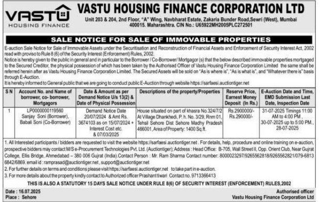 House situated on part of khasra No. 324/7/2 At Village Dhankhedi, P. h. No. 3/29, Rnm 01, Tehsil Sehore Dist Sehore Madhy Pradesh 466001, Area of Property: 1400 Sq.ft.