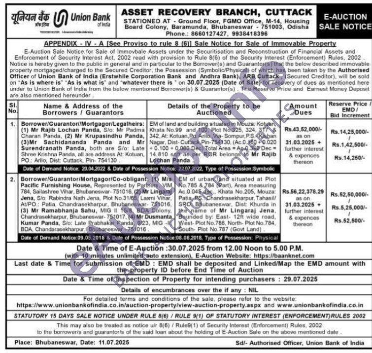 2) EM of urban land situated at Plot No.785 & 784 (Part), Area measuring Ac. 0.045 dec., Khata No.205, Mouza: Patia, PS.: Chandrasekharpur, Tahasil SRO: Bhubaneswar, Dist: Khurda in the name of Mr Lingaraj Jena, Bounded by: East- 12ft wide road, West- Plot No.786, North Plot No. 784, South- Plot No.787 (Govt Land