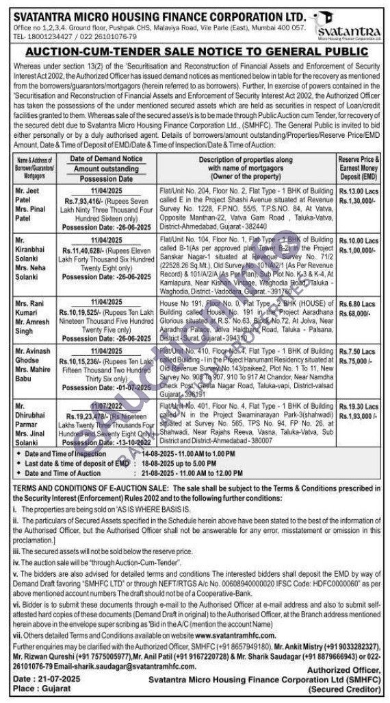Flat/Unit No. 401, Floor No. 4, Flat Type-1 BHK of Building called N in the Project Swaminarayan Park-3(shahwadi) situated at Survey No. 565, TPS No. 94, FP No. 26. at Shahwadi. Near Rajahs Reeva, Vasna, Taluka-Vatva, Sub District and District-Ahmedabad-380007