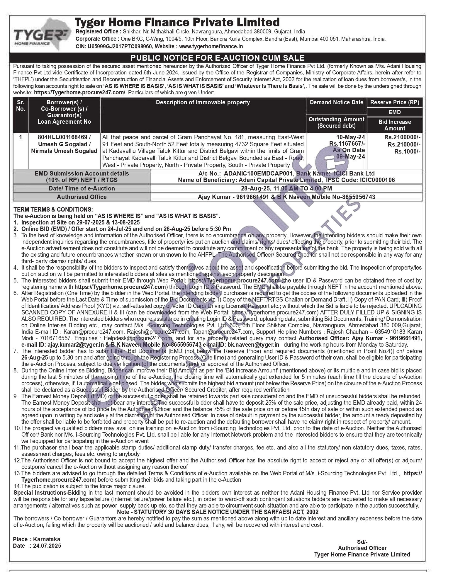 All that peace and parcel of Gram Panchayat No. 181, measuring East-West 91 Feet and South-North 52 Feet totally measuring 4732 Square Feet situated at Kadavalliu Village Taluk Kittur and District Belgavi within the limits of Gram Panchayat Kadarvalli Taluk Kittur and District Belgavi Bounded as East - Road, West-Private Property, North - Private Property, South - Private Property