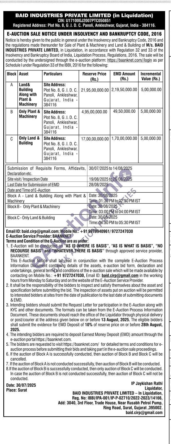 Only Plant & Machinery Plot No. 8, G.I. D. C. Panoli, Ankleshwar, Gujarat, India 384116