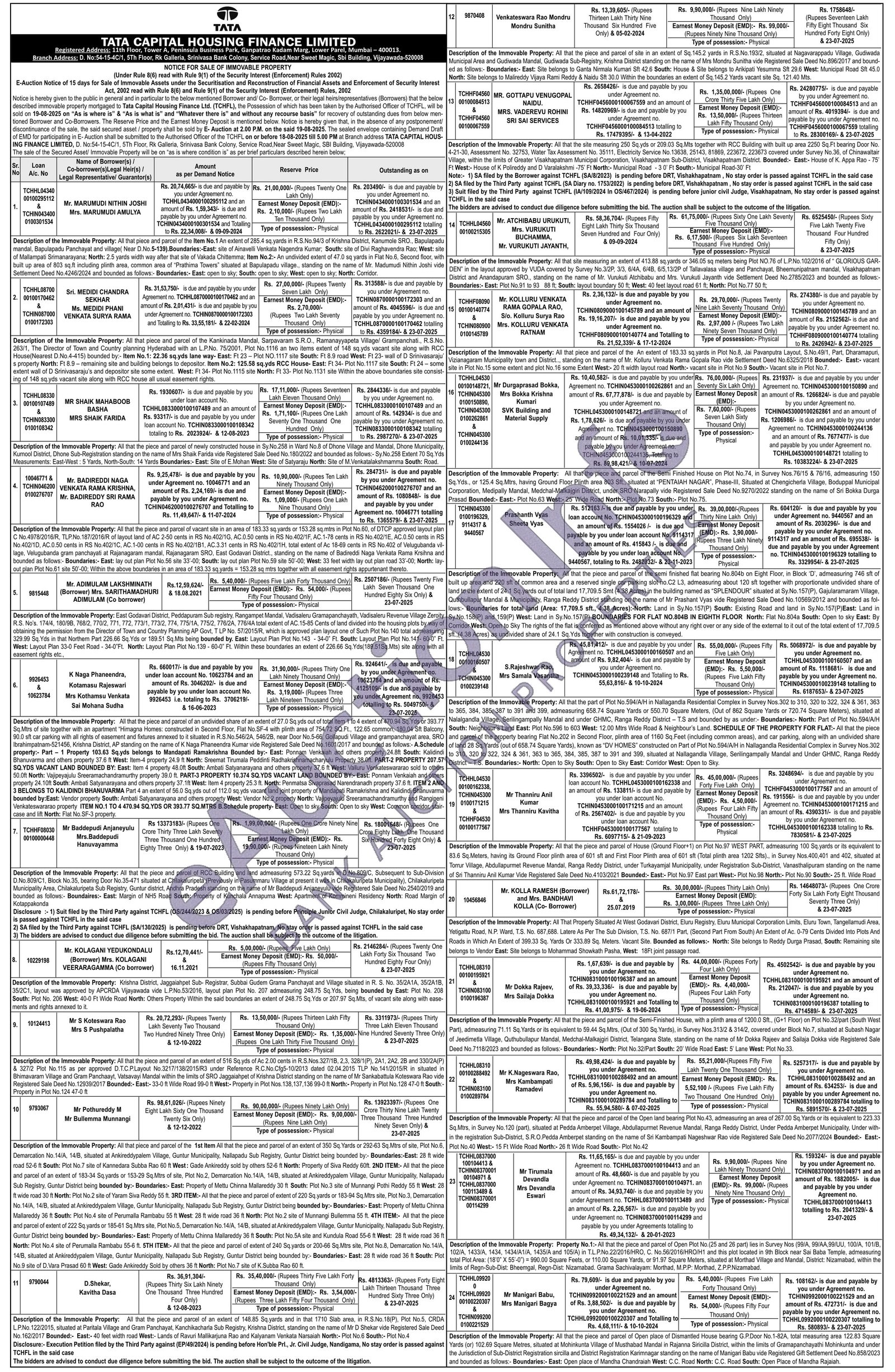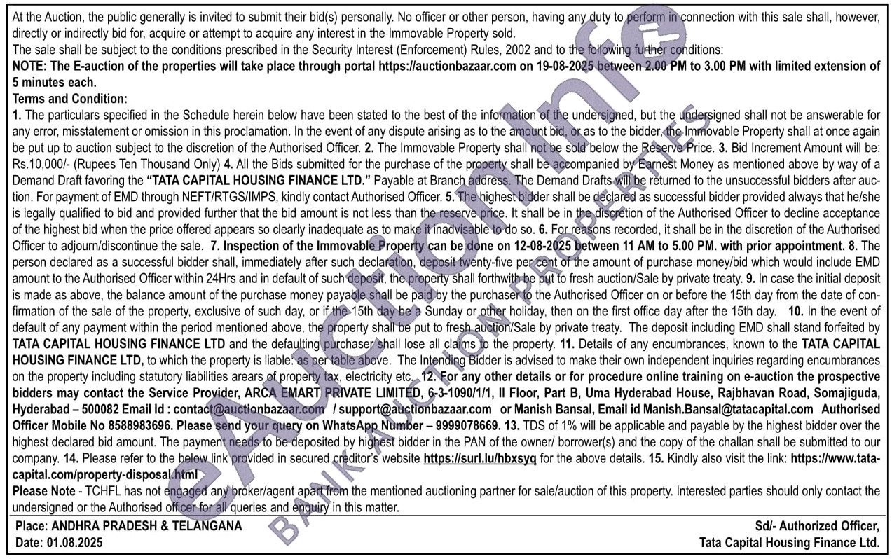 Description of the Immovable Property: All that the piece and parcel of newly constructed house in Sy.No.258 in Ward No.8 of Dhone Village and Mandal, Dhone Municipality, Kurnool District, Dhone Sub-Registration standing on the name of Mrs Shaik Farida vide Registered Sale Deed No. 180/2022 and bounded as follows:- Sy.No.258 Extent 70 Sq. Yds Measurements: East-West: 5 Yards, North-South: 14 Yards Boundaries:- East: Site of E. Mohan West: Site of Satyaraju North: Site of M. Venkatalakshmamma South: Road