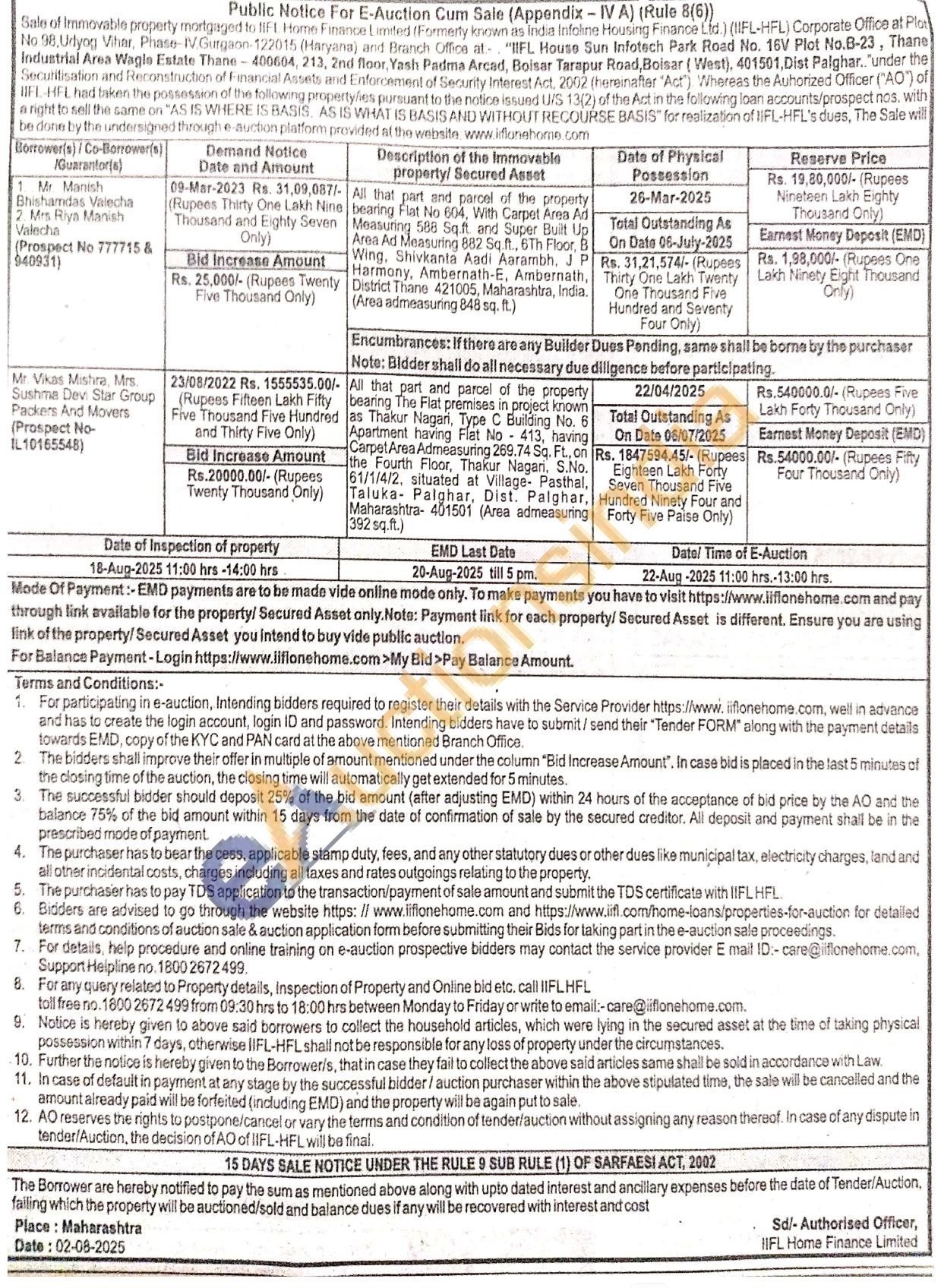 All that part and parcel of the property bearing Flat No 604, With Carpet Area Ad Measuring 588 Sqft and Super Built Up Area Ad Measuring 882 Sq.ft., 6Th Floor, B Wing, Shivkanta Aadi Aarambh. JP District Thane 421005, Maharashtra, India. Harmony, Ambernath-E, Ambernath, (Area admeasuring 848 sq. ft
