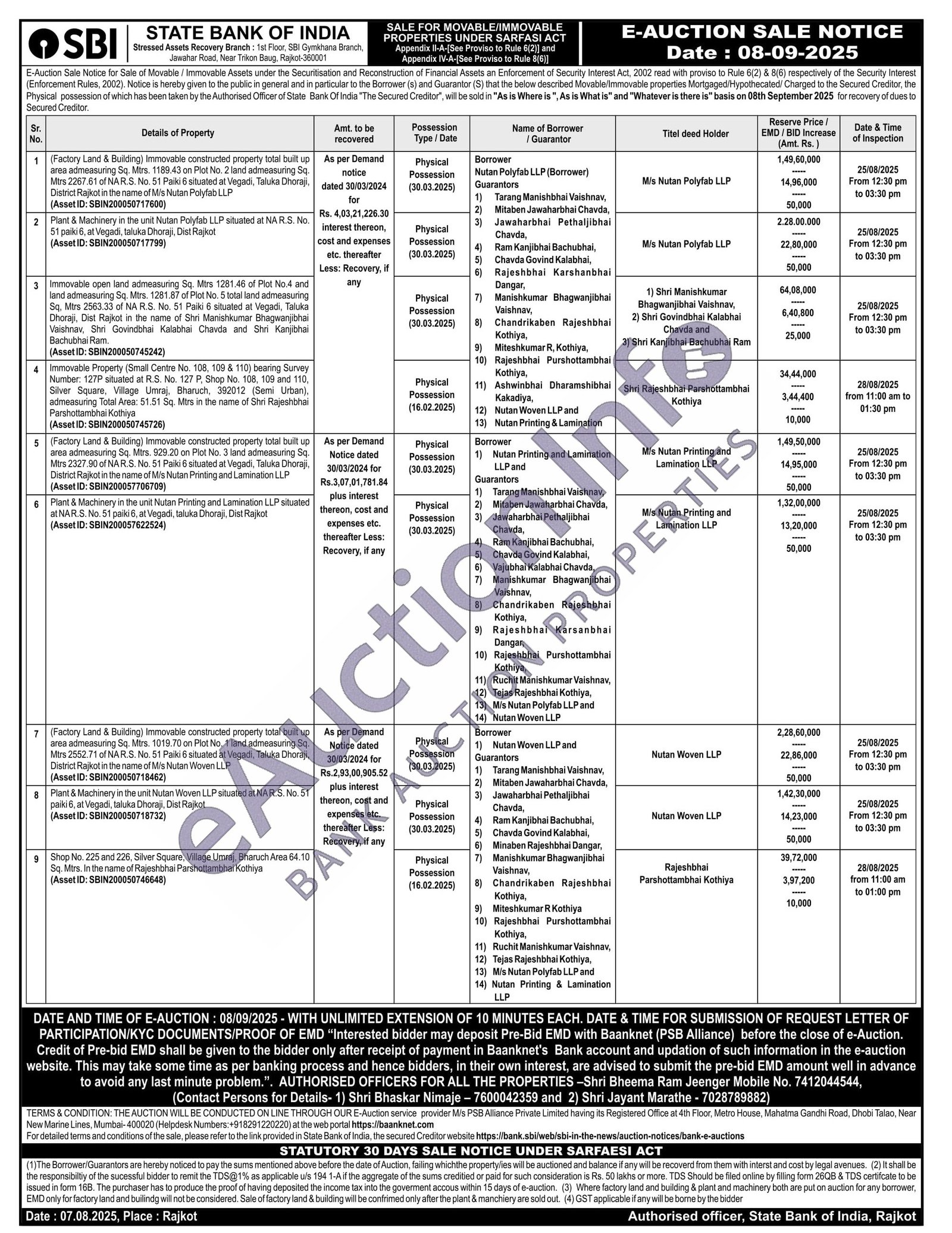 2) Plant & Machinery in the unit Nutan Polyfab LLP situated at NA R.S. No. 51 paiki 6, at Vegadi, taluka Dhoraji, Dist Rajkot