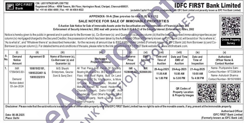 All That Piece And Parcel Of Property Bearing Municipal No. 383, Entire Second Floor, With Roof Rights, Built On Land Measuring 192 Sq. Yds. Approx., Is More Or Less In Boundaries, Situated In Mohalla Known As Haveli Haider Kuli, Chandni Chowk, Delhi-110006, And Bounded As:- East: Other's Property, West: Other's Property, North: Galli & South: Other's Property