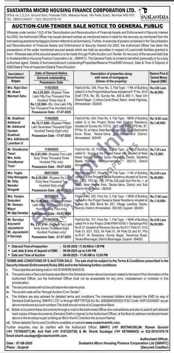 Flat Unit No. 404, Floor No. 4, Fist Type-1BHK of Buliding called G in the Project Shree Han Krishna Residency situated at Survey No.1151/2. 1152 and 1153, TPS No. 87. FP No. 53, at Vatva, Near Bachubhai Cross Road, Bachubhai Kuva Road, Taluka-Varva, Sub-district and District Ahmedabad-382445