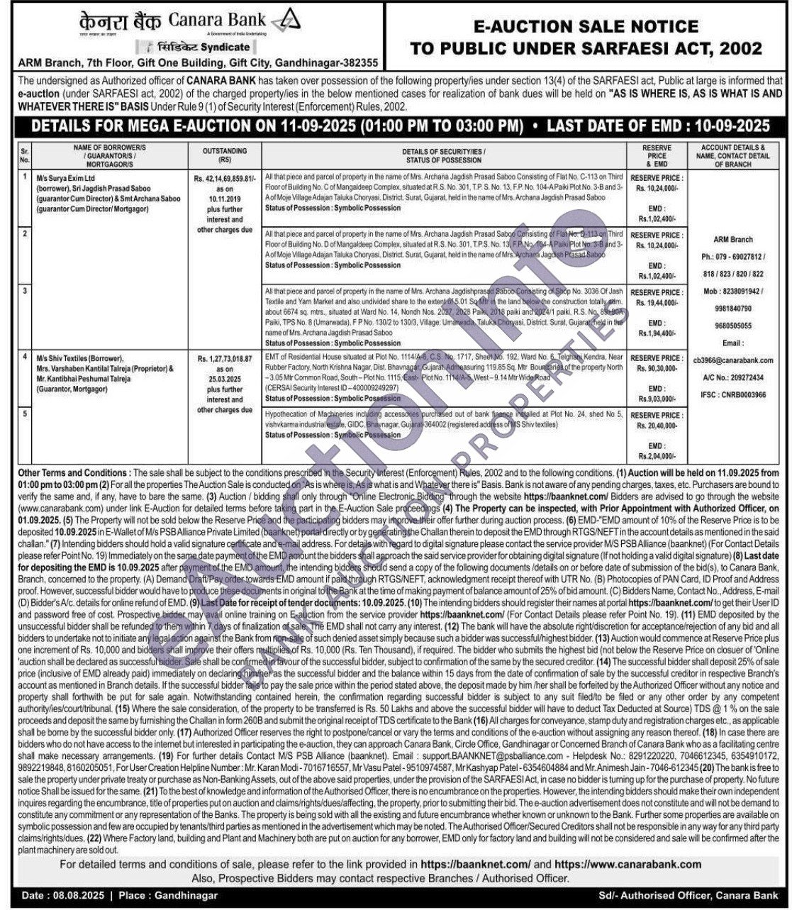 Hypothecation of Machineries including accessories purchased out of bank finance installed at Plot No. 24, shed No 5. vishvkarma industrial estate, GIDC, Bhavnagar, Gujarat-364002 (registered address of MS Shiv textiles) Status of Possession: Symbolic Possession