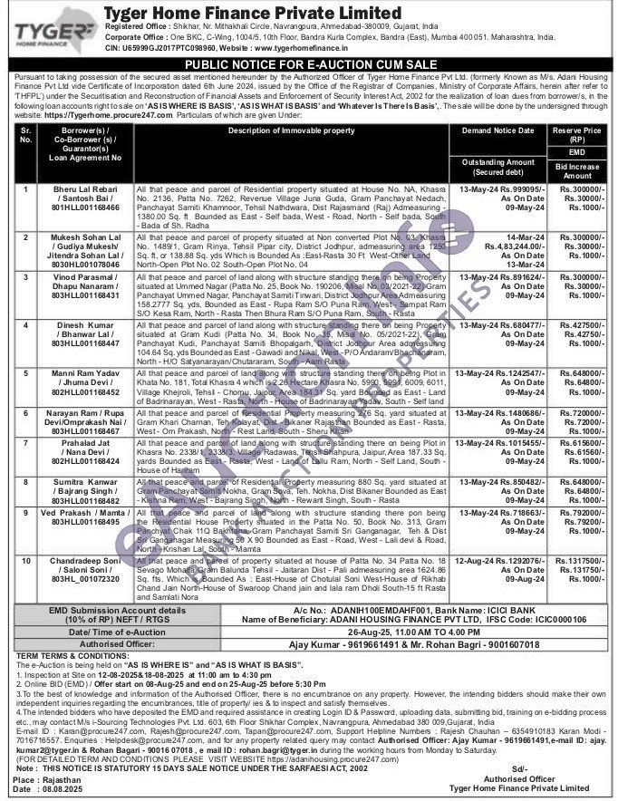All that peace and parcel of Residential Property measuring 276 Sq. yard situated at Gram Khari Chaman, Teh Kolayat, Dist-Bikaner Rajasthan Bounded as East - Rasta West-Om Prakash, North Rest Land, South-Sheru Khan