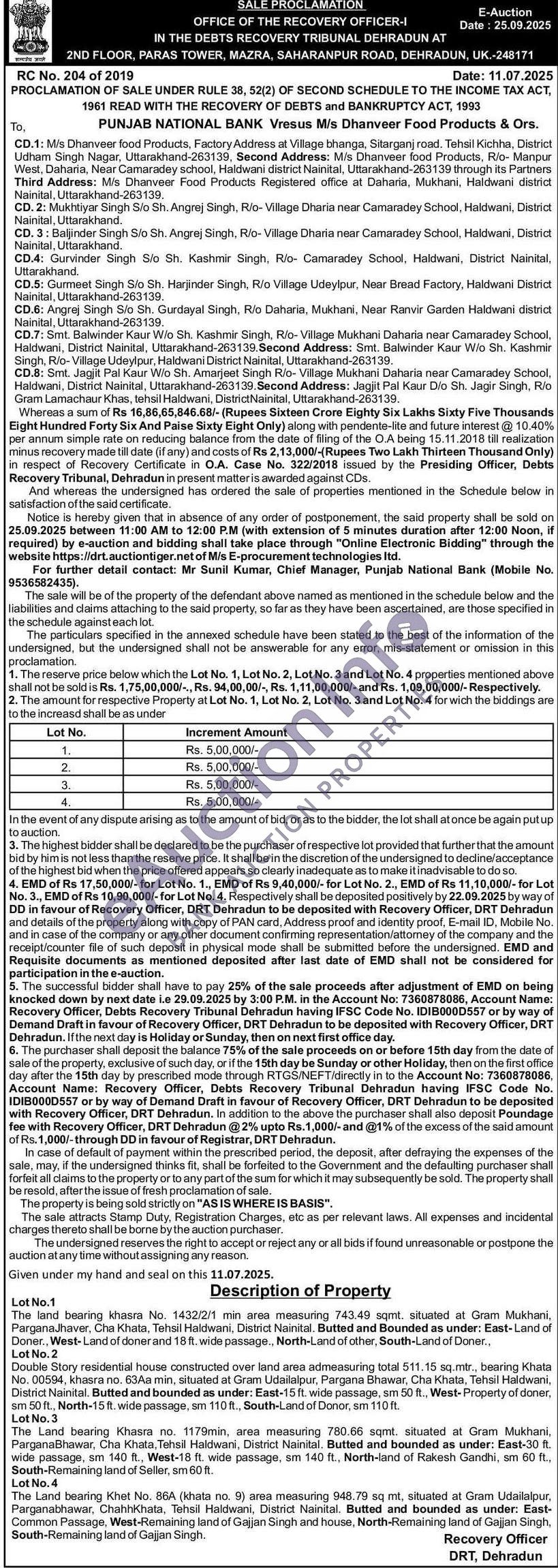 The land bearing khaars No. 143221 min area measuring 743.45 sqm sluated at Giam Mukhari, Pargana Jhaver, Cha Khats. Tahal Haldwani, District Nainital. Butted and Bounded as under: East-Land of Doner. West-Land of doner and 18 wide passage, North-Land of other, South-Land of Doner