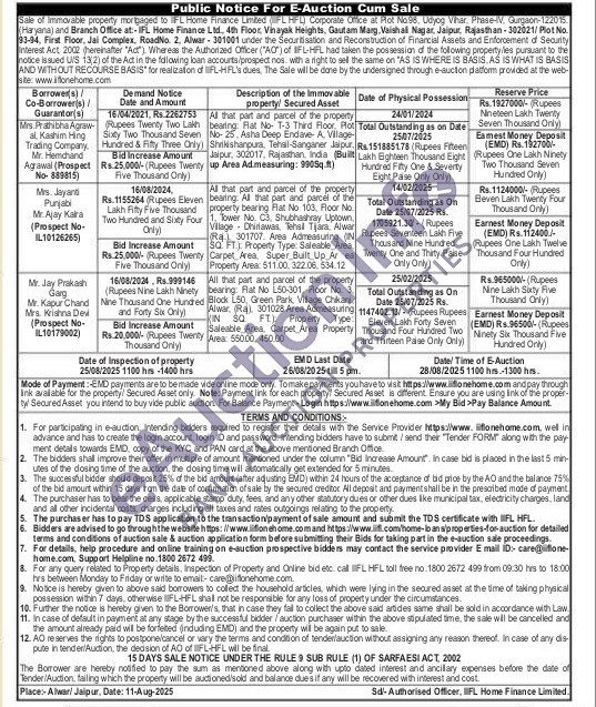 Al that part and parcel of the property bearing. Flat No- T-3 Third Floor Plot No-25. Asha Deep Endave- A. Village Shrikishanpura. Tehsil-Sanganer Jaipur Jaipur. 302017, Rajasthan, India (Built up Area Ad.measuring: 9905q.ft)