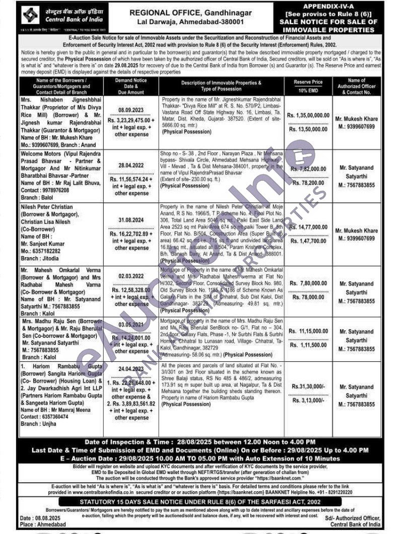 Property in the name of Nilesh Peter Christian at Moje Anand, R S No. 1966/5, TP Scheme No. 4. Final Plot No. 306, Total Land Area 5046 sq ml., Paki East Side Land Area 2523 sq mt Paiki Area 674 sq mt paiki Tower B, 5th Floor, Flat No. B/504, Construction Area (Super Built up area) 66.42 sq mt i.e. 715 sq ft and undivided land area 16.85 sq mt., situated at B/504, Param Krishna Complex, B/h. Ganesh Dairy, At Anand, Ta & Dist Anand- 388001