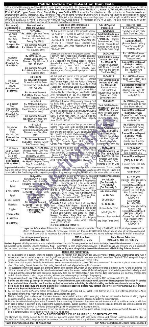All that part and parcel of the property bearing: Third Floor with Roof Terrace Rights towards back side of Built up Property Bearing No 181, out of Khasra No 21/6, situated in the revenue estate of Matiala Area abadi known as TExin, Part 3, Jain Colony Uttam nagar New Delhi 110059 Area Admeasuring (In Sq. Ft.): Property Type: Saleable Area, Carpet Area Property Area: 360.00, 269.00