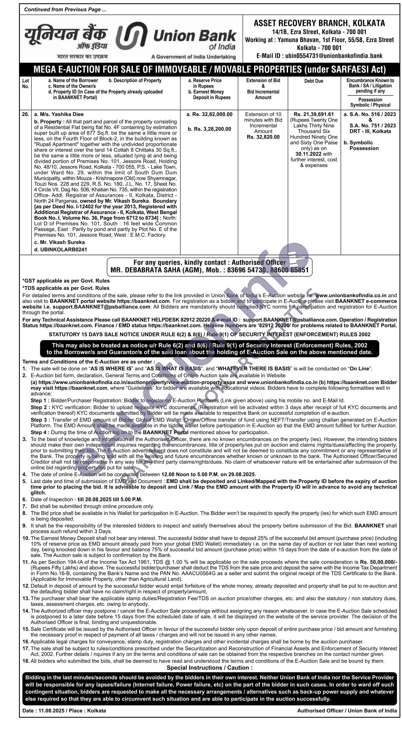 Piece and parcel of Plot No. 03 of Area 734 Decimals, Khatian No. 150/1, J.L. No. 51, Mouza Sudarshanpur & Plot No. 06, 07, Khatian No. 224/1, J.L. No. 54, Mouza - Choto Nabagram, Vill Chottolalpur, Raniganj - Chhatna Road, P.S. Gangal Ghati, Dist - Bankura, W.B., Pin-722 133, in the name of M/s. Unitriveni Overseas. Bounded by: North Property of Owner, South: Raniganj - Chhatna Road, East: Road, West: Property of others