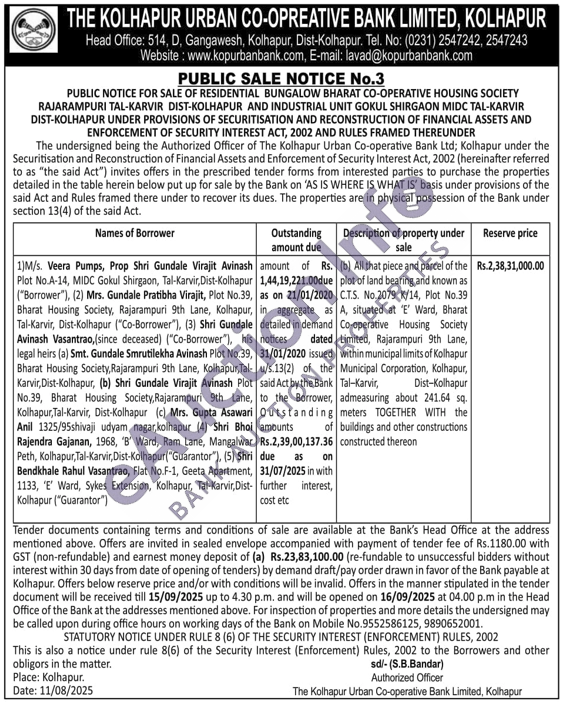 (b) All that piece and parcel of the plot of land bearing and known as C.T.S. No.2079 K/14, Plot No.39 A, situated at 'E' Ward, Bharat Co-operative Housing Society Limited, Rajarampuri 9th Lane, within municipal limits of Kolhapur Municipal Corporation, Kolhapur, Tal-Karvir, Dist-Kolhapur admeasuring about 241.64 sq. meters TOGETHER WITH the buildings and other constructions constructed thereon