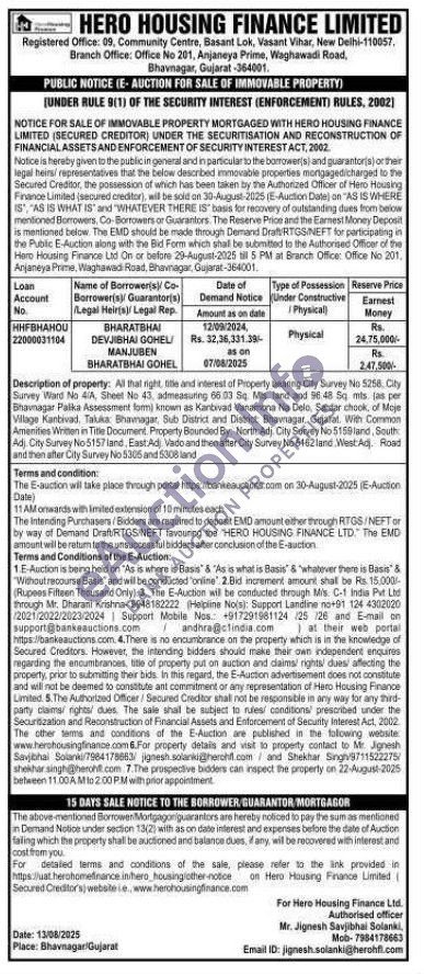 All that rigtit title and interest of Property bearing City Survey No 5258. City Survey Ward No 4A, Sheet No 43, admeasuring 66 03 Sq. Mts land and 96.48 Sq mis jas per Bhavnagar Palka Assessment form) known as Kantiwad Vanamona Na Delo, Sandar chook, of Moje Village Kanbivad, Takka Bhavnagar, Sub District and District Bhavnagar, Gujarat. With Common Amenities Written in Title Document. Property Bounded By: North Adj. City Survey No 5159land, South Adj. City Survey No 5157 land, East Adj Vado and then after City Survey No 5162 land West Adj. Road and then after City Survey No 5305 and 5308 land
