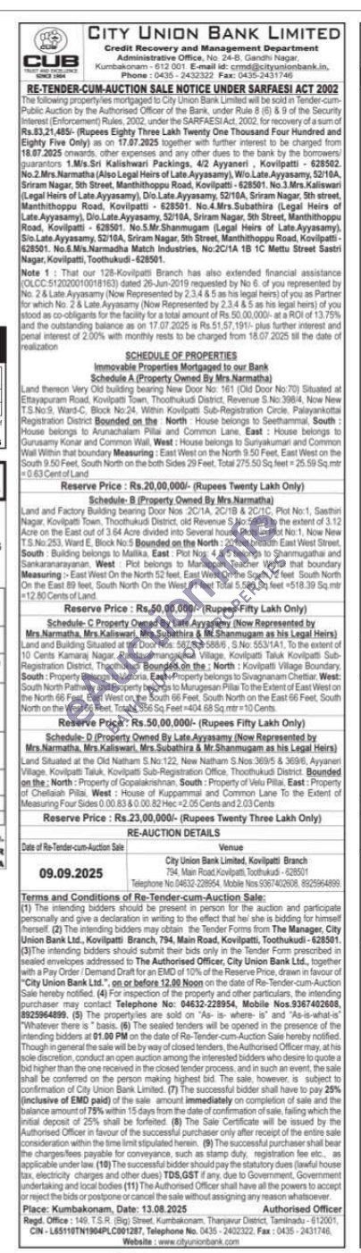 Schedule-C Property Owned By Late Ayyasamy (Now Represented by Mrs. Narmatha, Mrs.Kaliswari, Mrs. Subathira & Mr.Shanmugam as his Legal Heirs) Land and Building Situated at the Door Nos: 587/6 & 588/6, S.No. 553/1A1, To the extent of 10 Cents Kamaraj Nagar, Pandavarmangalana Vilage, Kovilpatti Taluk Kovilpatti Sub-Registration District, Thoothukudi Bounded on the North Kovilpatti Vilage Boundary, South: Property Belongs to Victoria, East: Property belongs to Sivagnanam Chettiar, West: South North Pathway and Property belongs to Murugesan Pillai To the Extent of East West on the North 66 Feet, East West on the South 66 Feet, South North on the East 66 Feet, South North on the West 66 Feet, Total 4,356 Sq. Feet 404 68 Sq.mer-10 Cents