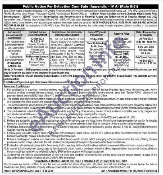 Al That Part And Parcel Of The Property Bearing Plat No2tip, Sub Plot No. 21/4, Rs No.21/1, Mulchand, Taluka Wadhwan, Surendranagar, Gujarat, India, 363001 Area Admeasuring jin Sq Ft.) Property Type: Land area, Bult up area Carpet area Property Area: 523.60, 418.80, 356.00 (area Ad.measuring 314 Sq. Ft)