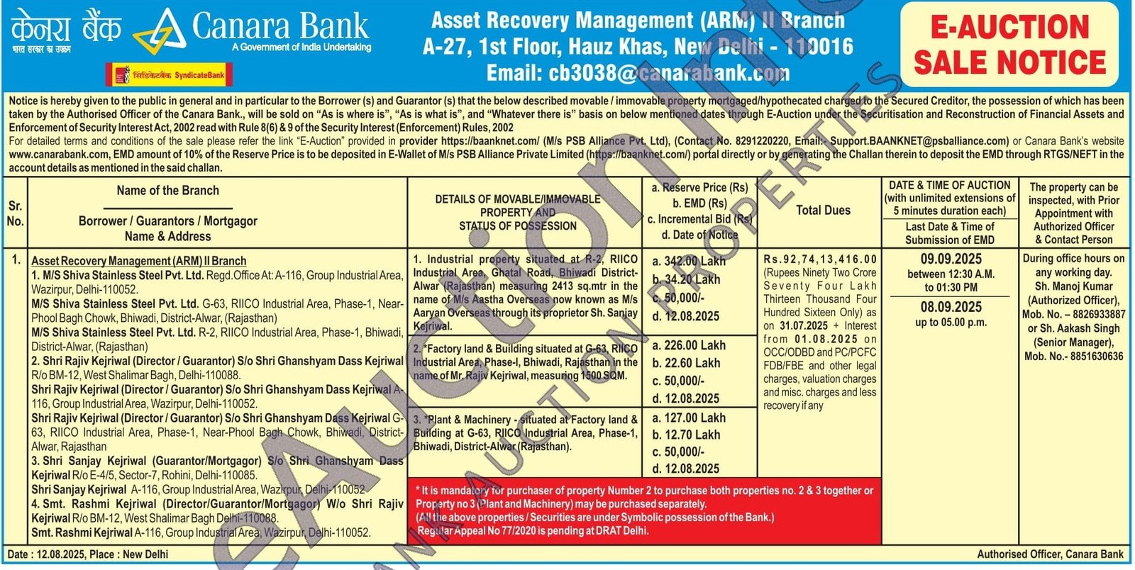 3. "Plant & Machinery situated at Factory land & Building at G-63, RIICO Industrial Area, Phase-1, Bhiwadi, District-Alwar (Rajasthan).