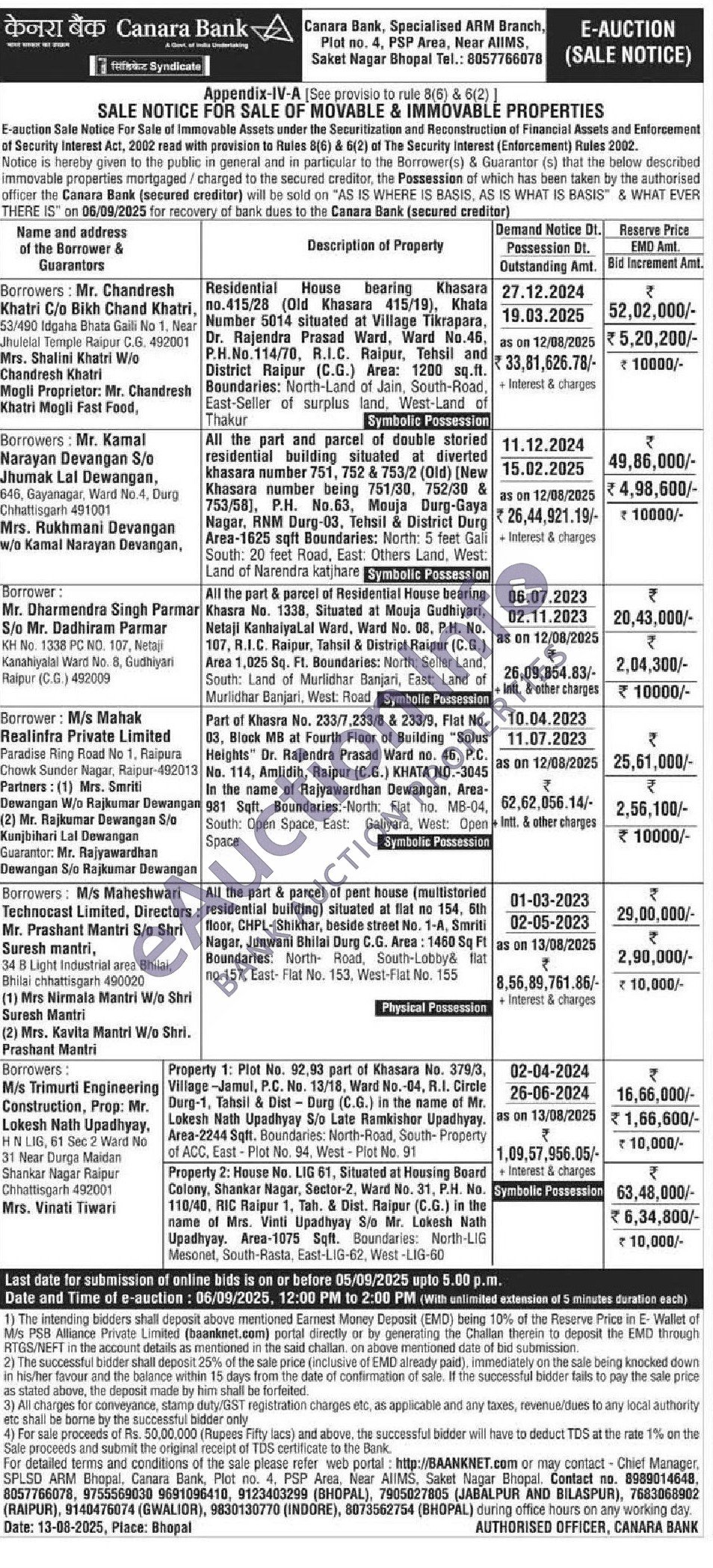 3) All the part & parcel of Residential House bearing Khasra No. 1338, Situated at Mouja Gudhiyari, Netaji Kanhaiyalal Ward, Ward No. 08. P.H. No. 107, R.I.C. Raipur, Tahsil & District Raipur (C.G.) Area 1,025 Sq. Ft. Boundaries: North: Seller Land, South: Land of Murlidhar Banjari, East: Land of Murlidhar Banjari, West: Road
