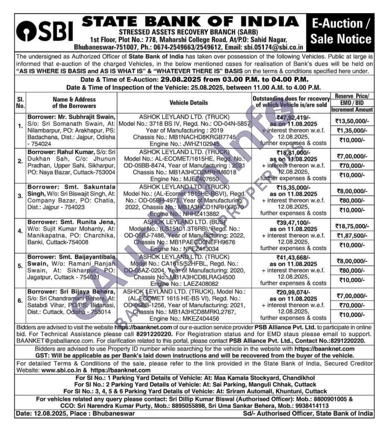ASHOK LEYLAND LTD. (TRUCK) Model No.: CA1615/52HFBL, Regd. No.: OD-05AZ-0204, Year of Manufacturing: 2020, Chassis No.: MB1A3HCD8LRAG4500 Engine No.: LAEZ408082