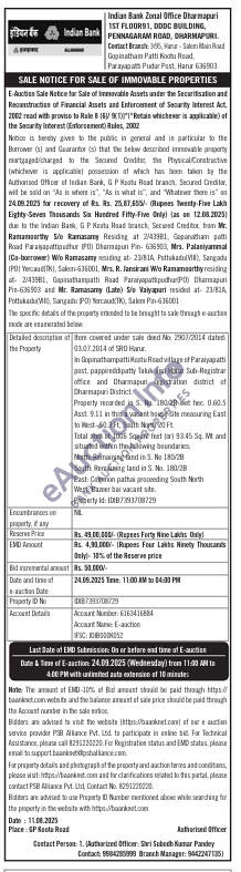 In Gopinathampatti Kootu Road village of Paraiyapatti post, pappireddipatty Taluk and Harur Sub-Registrar office and Dharmapuri registration district of Dharmapuri District.