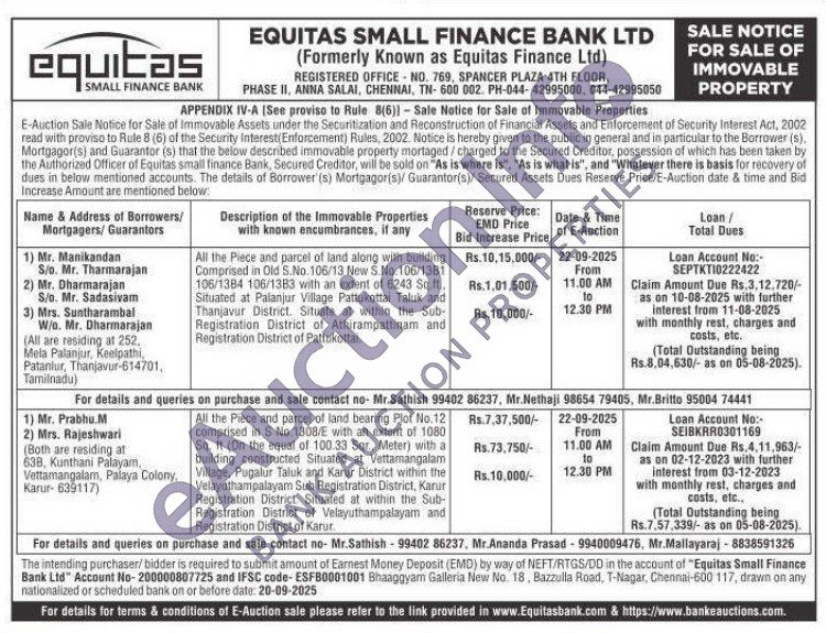 All the Piece and parcel of land bearing Plot No.12 comprised in S No.1308/E with an extent of 1080 Sq. It (On the equal of 100.33 Sqr., Meter) with a building constructed Situated at Vettamangalam Village, Pugalur Taluk and Karur District within the Velayuthampalayam Sub Registration District, Karur Registration District. Situated at within the Sub-Registration District of Velayuthampalayan and Registration District of Karur