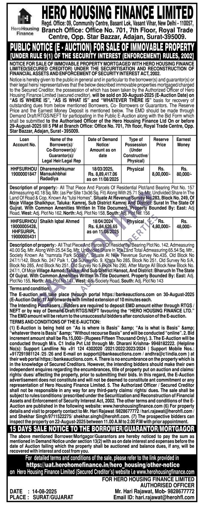 All That Piece And Parcels Of Residential Bearing Plot No. 142. Admeasuring 40.00 Sq. Mtr. Along With 25.54 Sq. Mtr. Undivided Share In The Land Total Admeasuring 65.54 Sq. Mtr., Society Known As 'namrata Park Society", Situate At New Revenue Survey No.435, Old Block No 247/1/142, Block No. 247 Paik 1, Old Survey No. 9, Khata No 285, Block No 251. Old Survey No 5/A, Block No 285, And Block No 251, Old Survey No 5 Black No 5 Block No 290. After Marge All Block New Block No. 247/1, Of Moje Village Aamod, Taluka: And Sub District Hansot, And District: Bharuch In The State Of Gujrat. With Common Amenities Written In Title Document. Property Bounded By: East: Adj. Plot No 155. North: Adj. Plot No 141, West: Adj. Society Road, South: Adj. Plot No 143