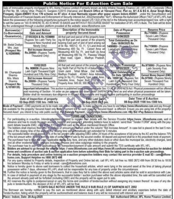 At that part and parcel of the property bear-ing All that part and parcel of the property bearing East part of plot of land arising out of Sr. No. 165 1/2, 10, 11, 12 Land Arma ad Measuring 400 Sq. Ft Carpet Arma ad Measuring 400 Sq Ft. and built Up Area ad Measuring 480 Sq Ft. Pawana W Maxi road, Ujjain, Madhya Pradesh 456001