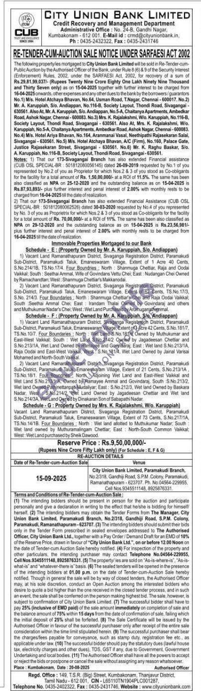 1) Vacant Land Ramanathapuram District, Sivaganga Registration District, Paramakudi Sub-District, Paramakudi Taluk, Emaneswaram Village, Extent of 1 Acre 40 Cents, S.No.214/18, TS.No. 17/4. Four Boundries: North Shanmuga Chettiar, Raja and Oodai Vaikkal: South: Seethai Ammal, Wife of Govindans Vettu Chei, East: Nudangan Chei Owned by Ramachandtan; West: Shanmuga Chettiar's Makkanodai.
