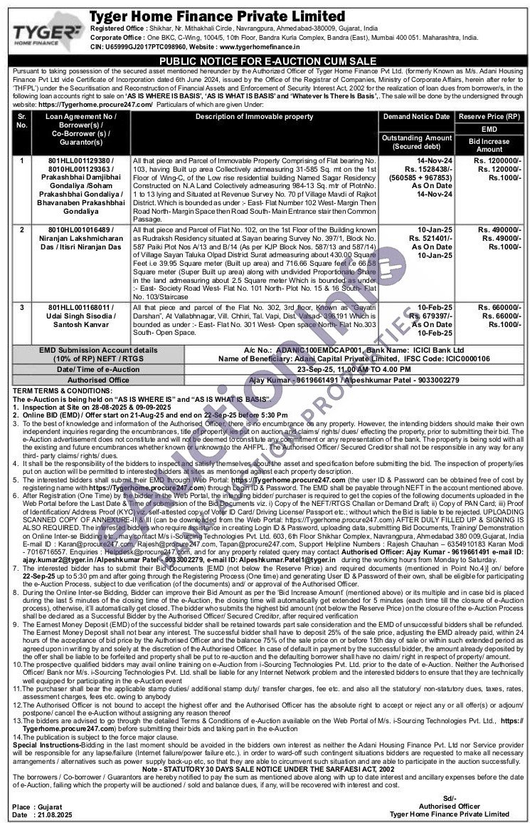 All that piece and parcel of the Flat No. 302, 3rd floor, Known as "Gayatri Darshan", At Vallabhnagar, Vill. Chhiri, Tal. Vapi, Dist. Valsad-396191 Which is bounded as under:- East-Flat No. 301 West- Open space North- Flat No.303 South-Open Space