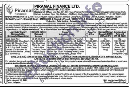 All The Plece and Parcel of the Property of New having an extent: Khasra No. 68, Sector 32, Panchkula NA Construction Site Hotel Pink Sand Construction Site of New Hotel Pink Sand Panchkula Panchkula Haryana IN 134102 Boundaries As Nors Vacant Plot South: Radiesion Hotel (Under Constr) East Road West: Chager River