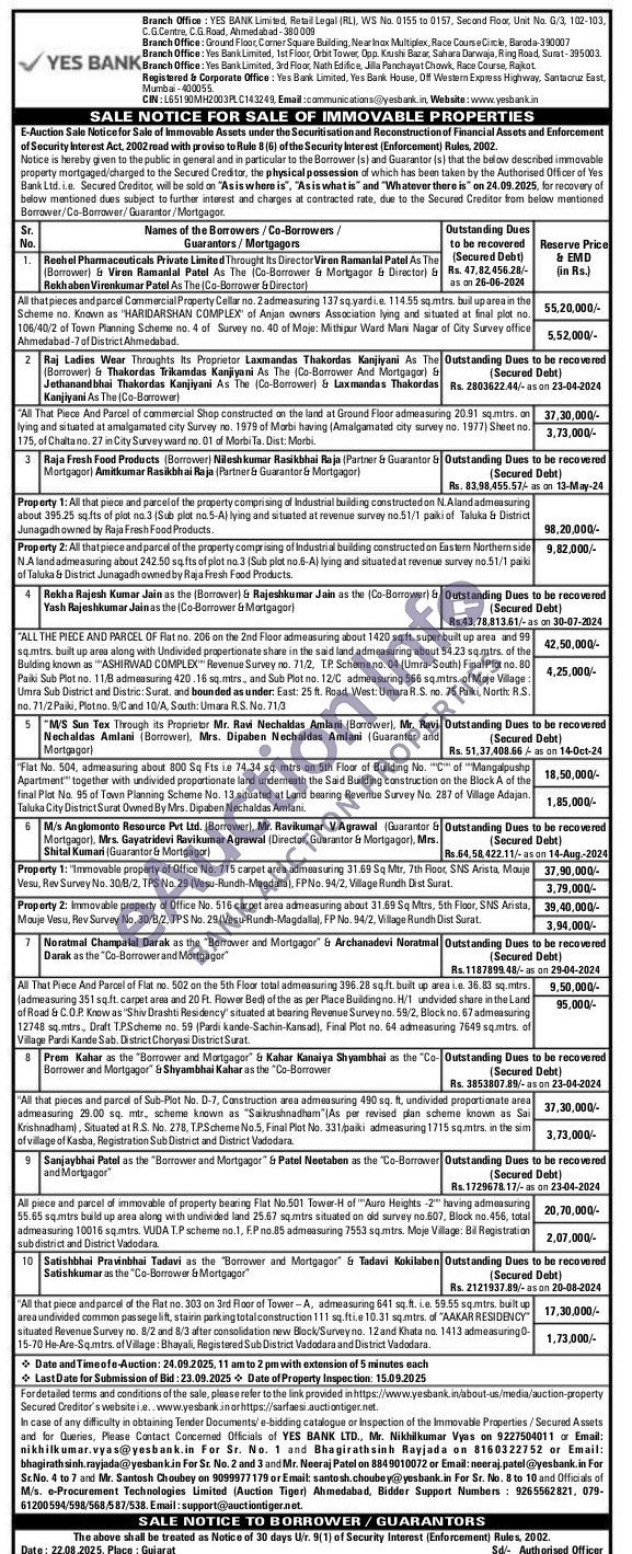 "ALL THE PIECE AND PARCEL OF Flat no. 206 on the 2nd Floor admeasuring about 1420 sq.ft. super built up area and 99 sq.mtrs. built up area along with Undivided propertionate share in the said land admeasuring about 54.23 sq.mtrs. of the Bulding known as "ASHIRWAD COMPLEX Revenue Survey no. 71/2, T.P. Scheme no. 04 (Umra-South) Final Plot no. 80 Paiki Sub Plot no. 11/B admeasuring 420.16 sq.mtrs., and Sub Plot no. 12/C admeasuring 566 sq.mtrs. of Moje Village: Umra Sub District and Distric: Surat, and bounded as under: East: 25 ft. Road, West: Umara R.S. no. 75 Paiki, North: R.S. no. 71/2 Paiki, Plotno. 9/C and 10/A, South: Umara R.S. No. 71/3